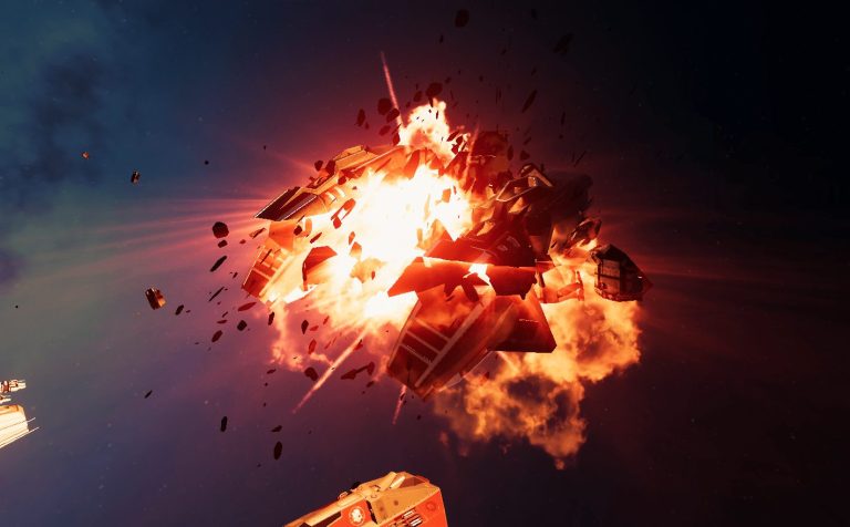 Давно хотел в своем SPACERIFT добраться до детализации эффекта, уничтожения корабля. Раньше спавнил просто одинаковые взрывы-вспышки, но когда в проекте стали появляться корабли разного размера и дизайна, захотелось, во первых, упростить себе работу — чтобы VFX генерировался индивидуально под каждый корабль, а во вторых — добиться того, чтобы можно было остановить игру на паузу, и, разглядывая взрыв, не всплакнуть от того, какой он мыльный и вообще не взрыв на самом деле.